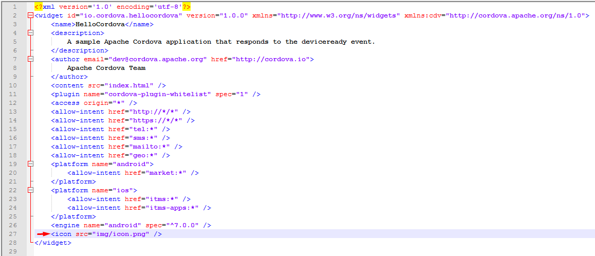 2) Buka config.xml pada root project